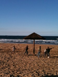 Op het strand van Durban wordt er door de jeugd uiteraard gevoetbald, maar ook wordt er cricket gespeeld.