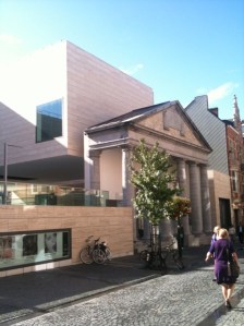 LEUVEN, 25 SEPTEMBER 2010. Je verwacht veel als je in een gerenommeerde Belgische krant eenmaal hebt gelezen over ’s werelds eerste museum met een businessloge, maar niet dat je eerst drie slecht verlichte trappen op moet om vervolgens – op de gok – een deur piepend en krakend te openen, je kijkt om de hoek en staart in het grote niets. Toch ben je er dan… Kennelijk. Welkom in de vipruimte, op de bovenste verdieping mét terras, van museum M in Leuven. Een beetje in verwarring kijken L. en ik rond. Dus dit is alles? Op de grond staat een muziekinstallatie. Het stof ligt op de boxen. Loop je het trapje af, kom je bij een kleine keuken. In de hoek staat een wit bankstel van leer. Het maakt een hopeloos verloren indruk in deze kale open ruimte. Het grote raam biedt, dat is waar, spectaculair uitzicht op de oude binnenstad.