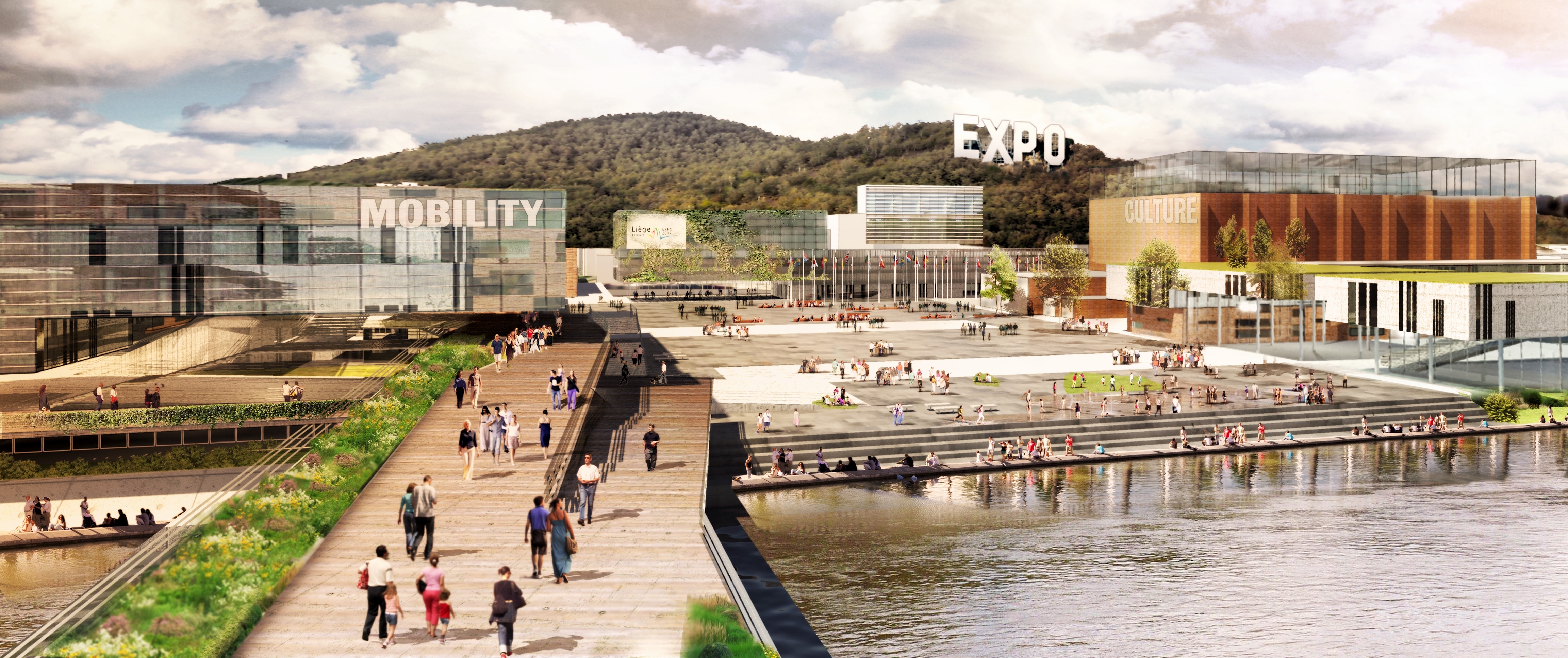 „Die nieuwe buurt komt er sowieso. Ook zonder de komst van de expo. Dat past in de visie van de stad Luik. Er is onlangs een besluit genomen over een tramtracé, dat loopt van het stadion van Standard Luik naar Coronmeuse. Ook komt er een school, een bibliotheek, een hotel en diverse winkels.” Een voetgangers- en fietsersbrug verbindt het expositieterrein met de wijk Droixhe – vaak gezien als het ‘afvalputje’ van de stad – aan de andere kant van de Maas.