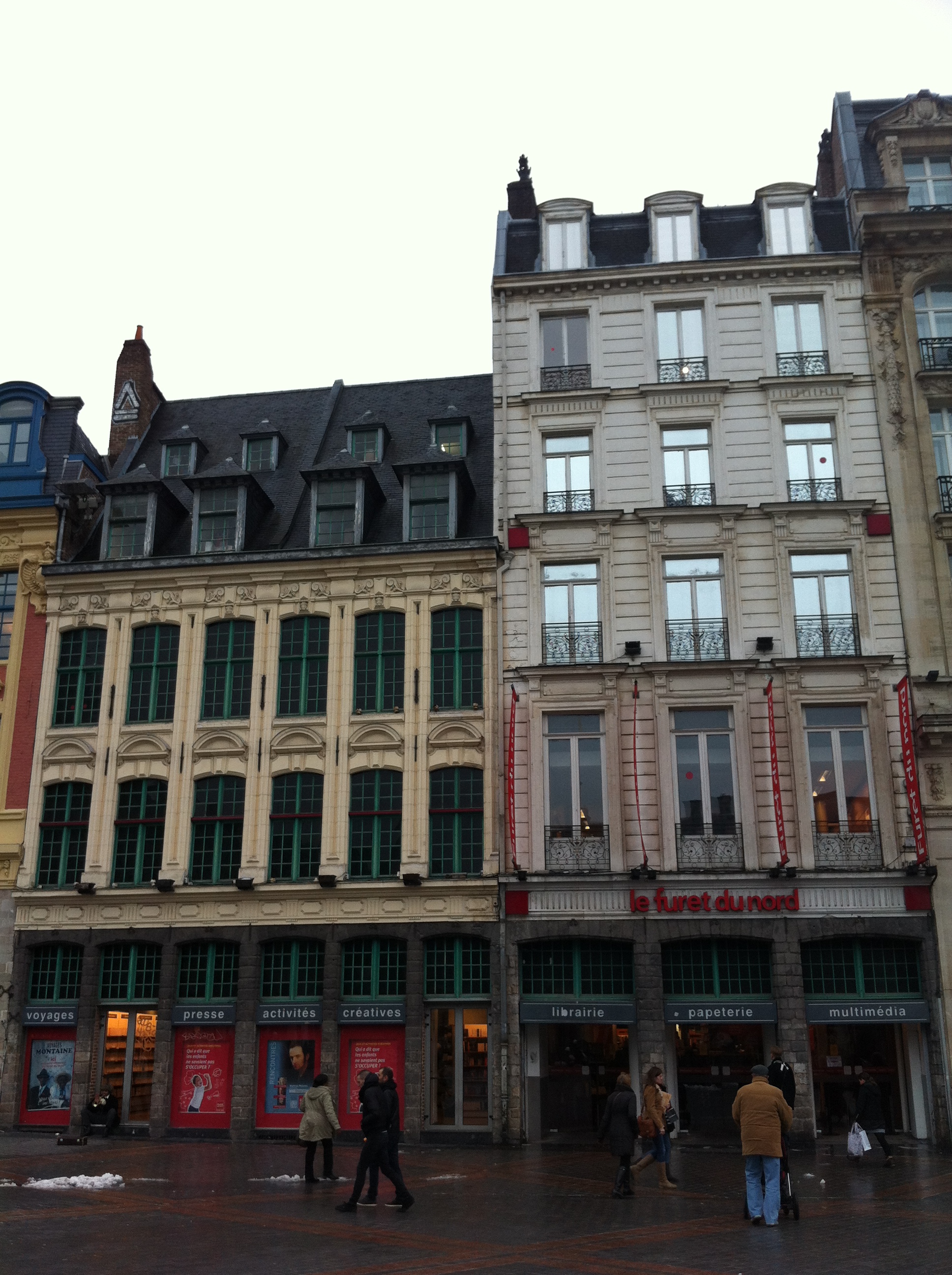 Le Furet du Nord, een van de grootste boekwinkels van Europa, huist achter twee zeventiende eeuwse gevels aan Grand Place in Lille.