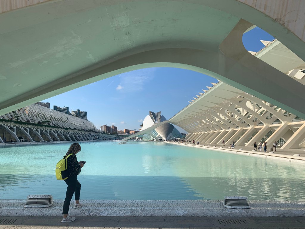 Fantastisch hoor, deze witte futuristische gebouwen van Santiago Calatrava. Soepeltjes fietst hij naar boven. Naar de 320 meter lange Umbracle, ontworpen als toegangspoort van de Ciutat de les Arts i les Ciències. Een publieke stadstuin van zo’n 17.000 vierkante meter. Van hieruit heb je een prachtig uitzicht op de wereld van glas en staal die architect Santiago Calatrava zijn geboortestad schonk.